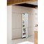 Встраиваемые холодильники монтируются в нишу или колонну. Передняя их часть закрывается декоративным мебельным фасадом и снаружи не отличается от дверцы обычного кухонного шкафа, так что их не нужно подбирать под интерьер помещения. Объем этих холодильников, как правило, несколько меньше, чем у отдельностоящих, так как при встраивании необходимо оставлять свободное пространство для вентиляции. Они отличаются меньшим уровнем шума, а также лучше держат холод и отличаются большей экономичностью из-за дополнительного слоя изоляции. Ассортимент этих холодильников не так велик, как у отдельно стоящих, установка более трудоемкая, а стоимость обычно несколько выше.