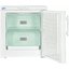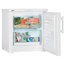 Отдельно стоящую модель высотой всего 63 см, шириной 55 см и весом не более 30 кг можно установить вплотную к стене или встроить в нишу в кухонном гарнитуре, поставить на стол, без труда перевезти в обычном автомобиле. Общий объем составляет 70 литров — такая камера будет незаменима летом на даче или дополнит прибор без морозильника. Несмотря на скромные размены, модель обладает высокой производительностью и способна замораживать до 8 кг продуктов в сутки. По своим характеристикам морозильник не уступает более вместительным приборам. Корпус изготовлен из стали, устойчивой к механическим повреждениям. Устройство отличает глянцевый белый фасад и эргономичная ручка со встроенным толкателем. Для регулировки температуры в широком диапазоне от −15 до −32 °C и для задания дополнительных параметров используется система управления MagicEye класса Comfort с дисплеем и кнопками. Для защиты от непредвиденного изменения настроек функции панели блокируются. Для размещения продуктов служат два вместительных пластиковых контейнера с прозрачной передней частью.