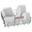 Направляющие для тарелок в корзинах посудомоечных машин позволяют разместить фаянсовую, фарфоровую, стеклянную посуду максимально безопасно и обеспечить ее лучшую очистку. Тарелки и блюдца разного размера могут размещаться как в верхней, так и в нижней корзине. В нижней части верхней корзины, как правило, имеются волнообразные или полукруглые выступы для установки небольших тарелок, мисок и блюдец. Специалисты рекомендуют устанавливать посуду в передней части корзины углублением назад, а тарелки в задней части корзины — углублением вперед, чтобы струи воды могли очистить их более эффективно.