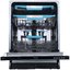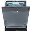 Как и другие встраиваемые пмм, эту модель отличает закрытая панель управления серебристого цвета. На ней имеется большой цифровой дисплей, куда выводится вся информация о выбранной программе, дополнительных опциях, оставшемся времени, а также кнопки активации дополнительных опций. Для отслеживания работы машины при закрытой дверце предусмотрен индикатор типа «Луч на полу», который гаснет, когда цикл мытья завершен.