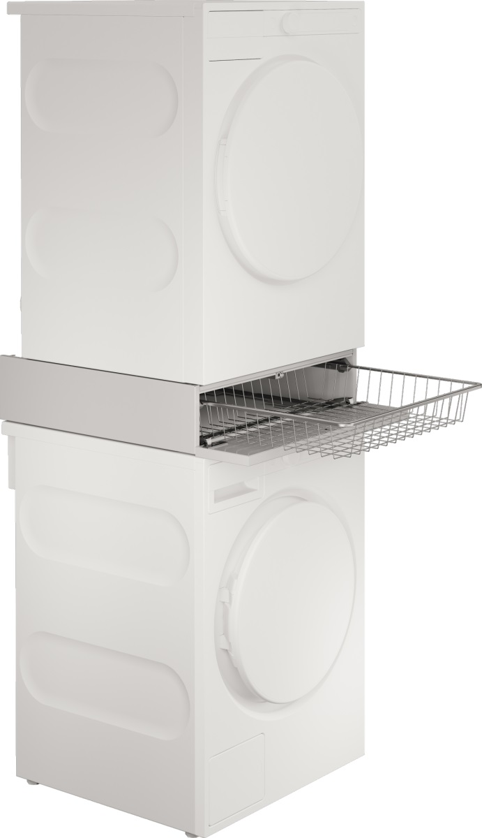 Соединительный элемент с выдвижной корзиной для белья белого цвета.
