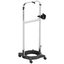 Стойка сделана из анодированного алюминия, имеет крепление для вешалки, полку для парогенератора, коврик для утюга. Можно передвигать с места на места благодаря колесам.