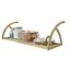 Навесная полка этой модели позволяет практично и удобно разместить незаменимые кухонные принадлежности в пространстве помещения. Она крепится на стену, за счет чего занимает минимум места, и имеет вместительные размеры, позволяющие разместить большое количество различных предметов: сковородок, баночек с приправами, кастрюль. Изготовлена полка из латуни – качественного, эстетичного и долговечного материала.
