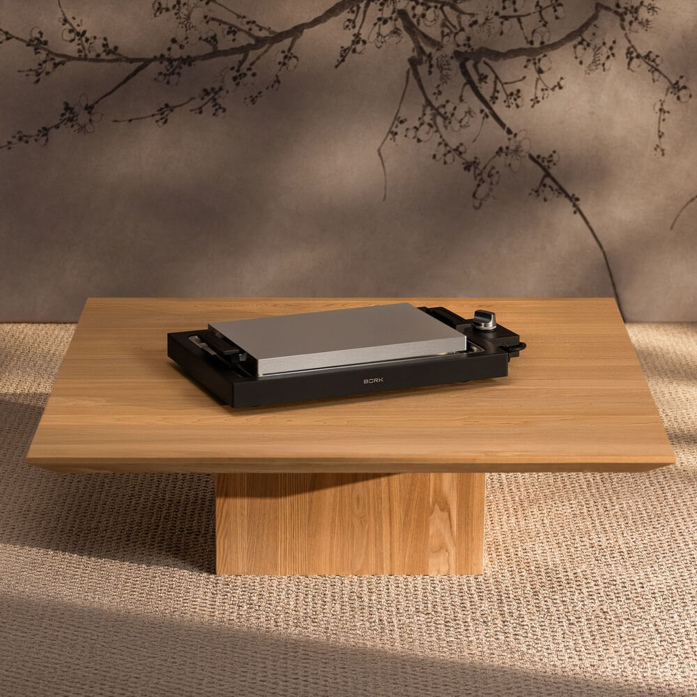 Гриль-теппан BORK G750 — стильное и функциональное устройство для приготовления блюд в японской традиции прямо у себя на кухне. Его плоская нагревательная поверхность имитирует классический теппан-яки, позволяя готовить мясо, морепродукты, овощи и даже яичницу с равномерной прожаркой и насыщенным вкусом. Компактные размеры — всего 8,8 см в высоту при ширине 57,3 см и глубине 33,4 см — обеспечивают удобное размещение на любой столешнице, не занимая много места, и позволяют легко переносить прибор при необходимости.