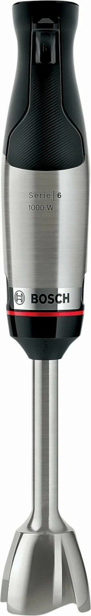 Погружной блендер Bosch позволяет готовить смузи, коктейли, смешивать соусы и заправки и многое другое. Такая конструкция требует вашего участия — нужно держать рукоятку с насадкой и контролировать направление движения. Плюс в том, что можно использовать ее прямо в кастрюле, когда готовите, например, суп-пюре. Корпус сделан в основном из металла, что повышает надежность прибора. Он может как влиться в общую гамму интерьера, так и стать ярким акцентом; доминирующий цвет — черный.
