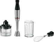 Погружной блендер Bosch позволяет готовить смузи, коктейли, смешивать соусы и заправки и многое другое. Такая конструкция требует вашего участия — нужно держать рукоятку с насадкой и контролировать направление движения. Плюс в том, что можно использовать ее прямо в кастрюле, когда готовите, например, суп-пюре. Корпус сделан в основном из металла, что повышает надежность прибора. Он может как влиться в общую гамму интерьера, так и стать ярким акцентом; доминирующий цвет — нержавеющая сталь.