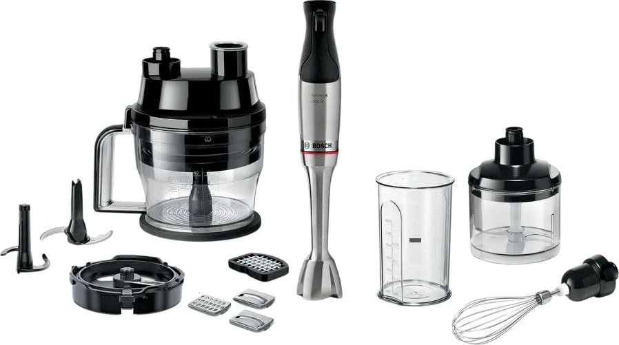 Блендер Bosch MSM6M8X1 черный — мощный и лаконичный погружной прибор, созданный для быстрого и эффективного измельчения, взбивания и перемешивания продуктов прямо в посуде. Матовый чёрный корпус придаёт устройству современный и солидный вид, подчёркивая его принадлежность к технике премиального уровня. Несмотря на наличие всего одной скорости, высокая мощность в 1200 Вт обеспечивает мгновенный результат: плотные овощи, замороженные ягоды, орехи и даже кусочки льда превращаются в однородную массу за считанные секунды.