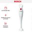 Погружной блендер Bosch позволяет готовить смузи, коктейли, смешивать соусы и заправки и многое другое. Такая конструкция требует вашего участия — нужно держать рукоятку с насадкой и контролировать направление движения. Плюс в том, что можно использовать ее прямо в кастрюле, когда готовите, например, суп-пюре. Корпус сделан в основном из пластика, что уменьшает вес прибора. Он может как влиться в общую гамму интерьера, так и стать ярким акцентом; доминирующий цвет — белый.