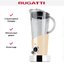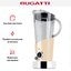 Стационарный блендер Bugatti позволяет готовить смузи, коктейли, смешивать соусы и заправки, измельчать продукты до состояния пюре и многое другое. Его конструкция подразумевает автономную работу — вам нужно только положить овощи или фрукты и выбрать режим. Корпус сделан в основном из металла, что повышает надежность прибора. Он может как влиться в общую гамму интерьера, так и стать ярким акцентом; доминирующий цвет — кремовый.