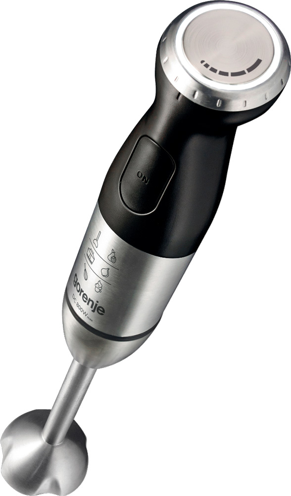 Погружной блендер Gorenje позволяет готовить смузи, коктейли, смешивать соусы и заправки и многое другое. Такая конструкция требует вашего участия — нужно держать рукоятку с насадкой и контролировать направление движения. Плюс в том, что можно использовать ее прямо в кастрюле, когда готовите, например, суп-пюре. Он может как влиться в общую гамму интерьера, так и стать ярким акцентом; доминирующий цвет — черный. Благодаря специальным нескользящим ножкам блендер сохраняет устойчивость даже на высоких оборотах.