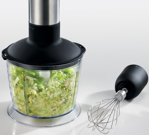 Погружной блендер — устройство, служащее прежде всего для измельчения продуктов, и также для смешивания, взбивания, дробления. Он состоит из корпуса с двигателем, ножки и сменных насадок в нижней части. Насадка-нож погружается в емкость с продуктом, после сего блендер включается для измельчения.