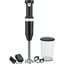 Конструкция прибора продумана до мелочей: погружная часть изготовлена из прочной нержавеющей стали, устойчивой к царапинам и коррозии, что гарантирует долговечность и безопасность при контакте с пищевыми продуктами. Корпус и съёмная чаша объёмом 0,7 литра выполнены из качественного пластика, который легко моется и не впитывает посторонние запахи. Матовое чёрное покрытие придаёт устройству солидный и лаконичный вид, гармонично вписывая его в интерьеры в современном или минималистичном стиле.