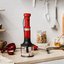 Погружной блендер KitchenAid позволяет готовить смузи, коктейли, смешивать соусы и заправки и многое другое. Такая конструкция требует вашего участия — нужно держать рукоятку с насадкой и контролировать направление движения. Плюс в том, что можно использовать ее прямо в кастрюле, когда готовите, например, суп-пюре. Корпус сделан в основном из пластика, что уменьшает вес прибора. Он может как влиться в общую гамму интерьера, так и стать ярким акцентом; доминирующий цвет — красный.