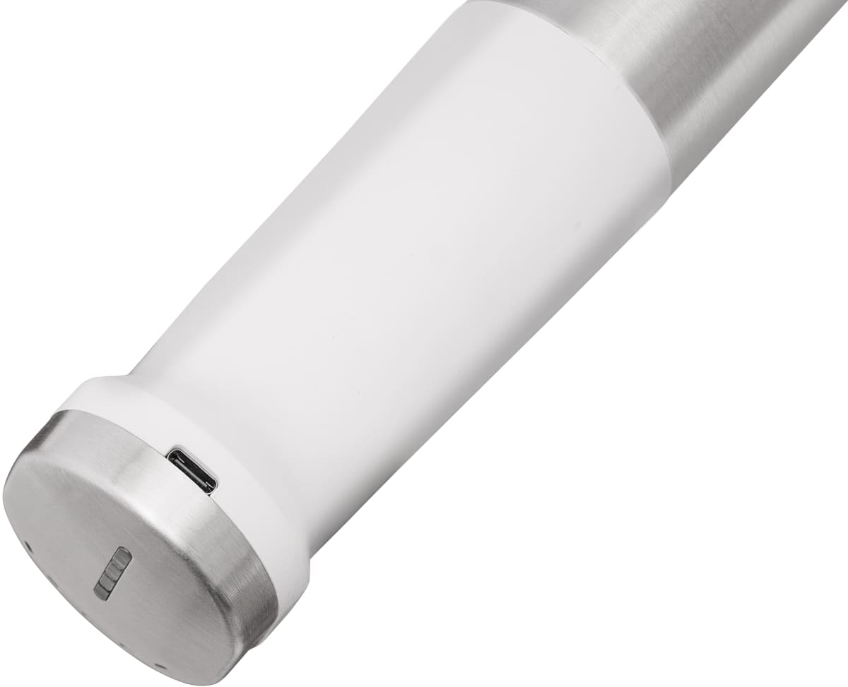 Количество скоростей, которое вы можете выбрать: 5. Мощность работы достигает 300 Вт, поэтому у вас получится обработать даже твердые продукты. Заряда аккумулятора хватает на несколько циклов без подключения к сети. Традиционное механическое управление просто и понятно — никаких проблем с переключением режимов.