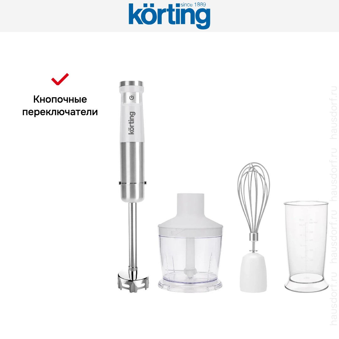 Погружной блендер Korting позволяет готовить смузи, коктейли, смешивать соусы и заправки и многое другое. Такая конструкция требует вашего участия — нужно держать рукоятку с насадкой и контролировать направление движения. Плюс в том, что можно использовать ее прямо в кастрюле, когда готовите, например, суп-пюре. Корпус сделан в основном из металла, что повышает надежность прибора. Он может как влиться в общую гамму интерьера, так и стать ярким акцентом; доминирующий цвет — белый.