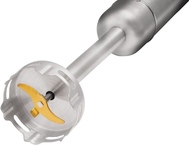 Погружной — мотор расположен в рукоятке, на конце которой есть насадка с венчиком или ножами. Вы опускаете ее в емкость и измельчаете продукты, удерживая прибор на месте, нажимая или проводя по кругу.