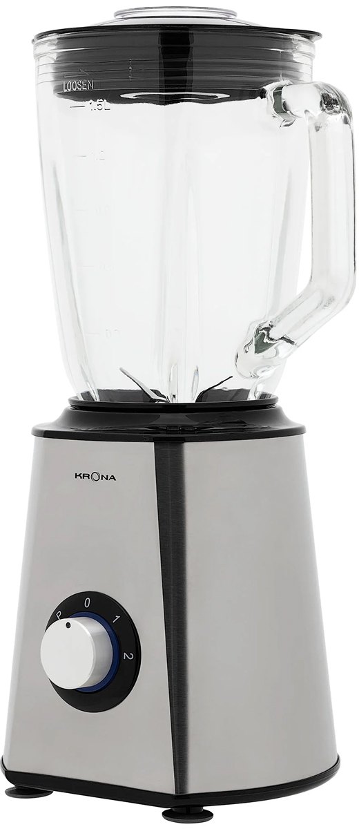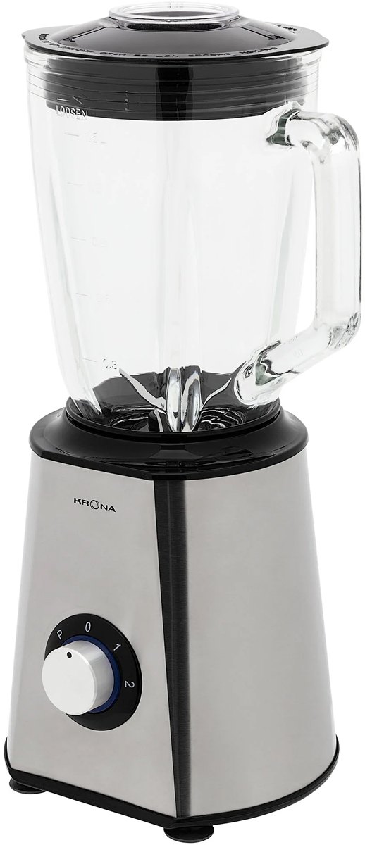Стационарный блендер KRONA позволяет готовить смузи, коктейли, смешивать соусы и заправки, измельчать продукты до состояния пюре и многое другое. Его конструкция подразумевает автономную работу — вам нужно только положить овощи или фрукты и выбрать режим. Корпус сделан в основном из металла, что повышает надежность прибора. Он может как влиться в общую гамму интерьера, так и стать ярким акцентом; доминирующий цвет — нержавеющая сталь. Благодаря специальным нескользящим ножкам блендер сохраняет устойчивость даже на высоких оборотах.