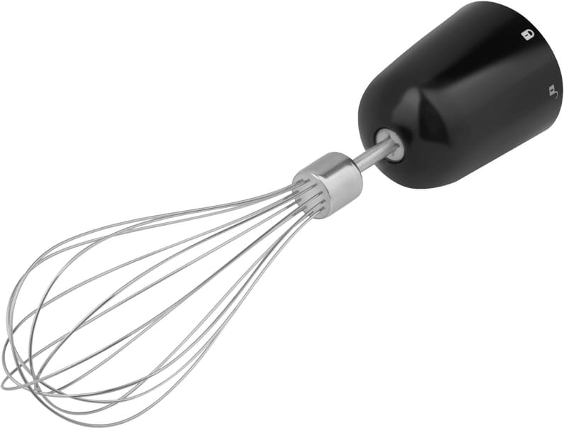 Погружной — мотор расположен в рукоятке, на конце которой есть насадка с венчиком или ножами. Вы опускаете ее в емкость и измельчаете продукты, удерживая прибор на месте, нажимая или проводя по кругу.