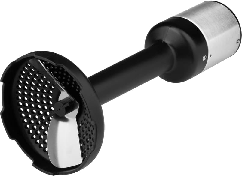 Погружной блендер — устройство, служащее прежде всего для измельчения продуктов, и также для смешивания, взбивания, дробления. Он состоит из корпуса с двигателем, ножки и сменных насадок в нижней части. Насадка-нож погружается в емкость с продуктом, после сего блендер включается для измельчения.
