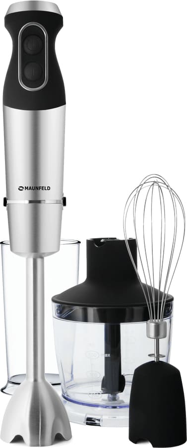 Погружной блендер Maunfeld MHBL-1000S представляет собой удачное сочетание стильного внешнего вида и продуманной эргономики. Корпус выполнен из металла, что придаёт прибору надежность и защиту от мелких повреждений. Компактные габариты и вес около 1.68 кг позволяют легко найти место для устройства даже на тесной кухне.