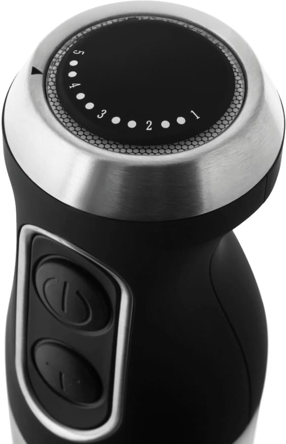 Мощность 1000 Вт обеспечивает высокую производительность при работе с плотными продуктами. Пять скоростей дают плавный переход от деликатного смешивания к активному измельчению. Электронное управление и кнопочные переключатели упрощают выбор режима и увеличивают точность настройки. Турборежим служит для кратковременного увеличения мощности и помогает справиться с кусками льда, орехов или крупными кусками овощей.
