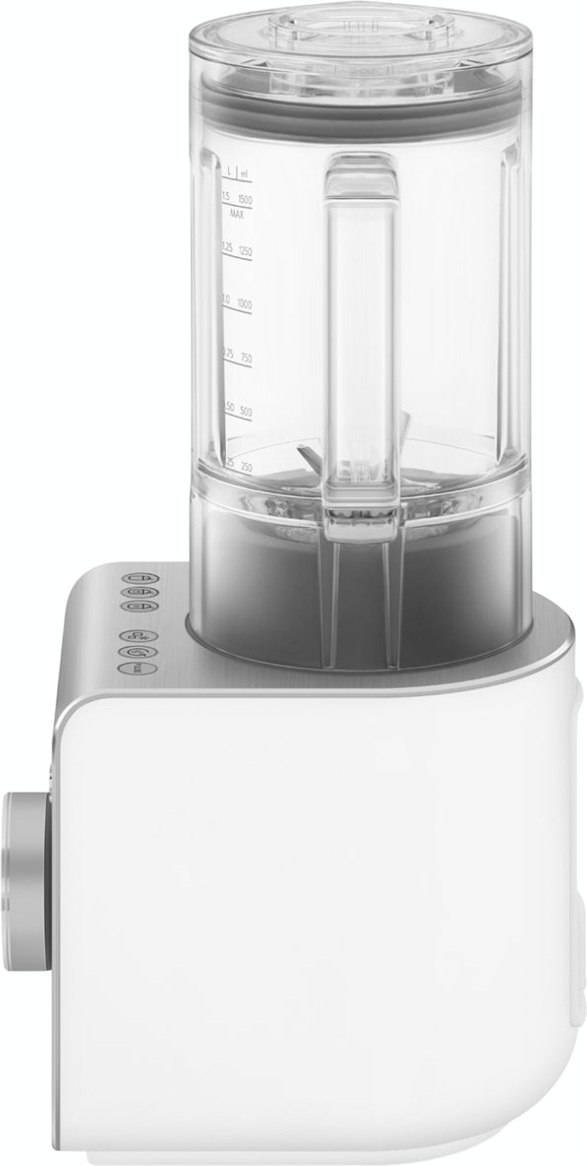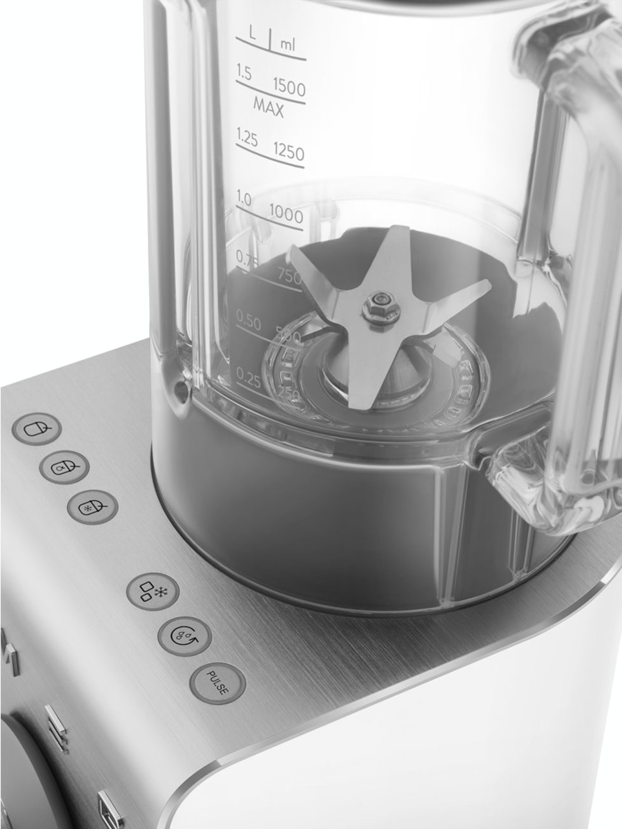 Количество скоростей, которое вы можете выбрать: 9. Мощность работы достигает 1400 Вт, поэтому у вас получится обработать даже твердые продукты. Современное электронное управление просто и понятно — никаких проблем с переключением режимов. Плавный пуск гарантирует постепенное повышение скорости, за счет этого разрозненные кусочки смешиваются в идеальную массу. Когда вы снимаете кувшин, мотор автоматически выключается, чтобы избежать повреждений.