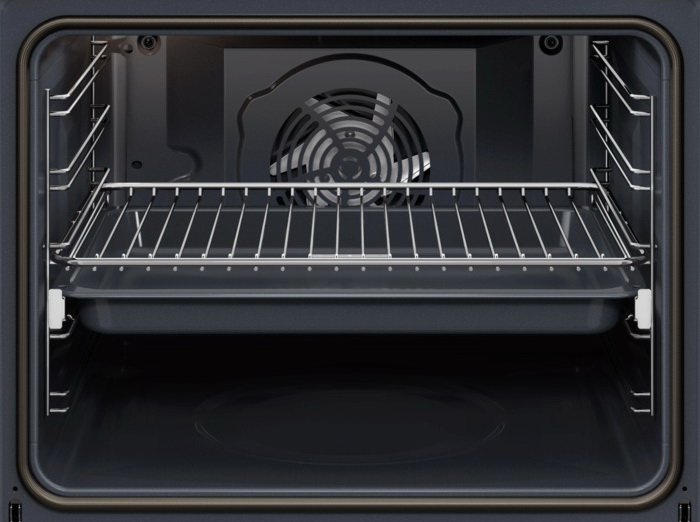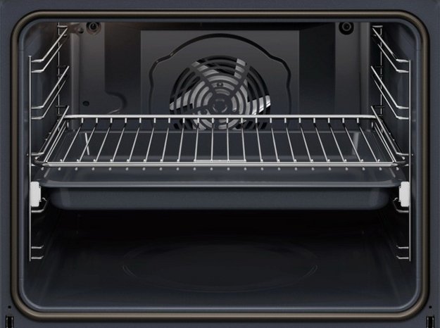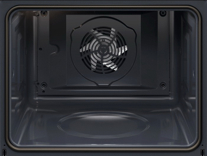 Этот трубчатый нагреватель проходит по периметру задней стенки. Внутри образованного им контура за специальной перфорированной стенкой находится мощный вентилятор. Когда воздух нагревается, вентилятор равномерно распределяет его по всему пространству камеры, так что во всех ее участках поддерживается одинаковая температура. Поскольку используется задний нагрев, потоки воздуха проникают между уровнями приготовления, что позволяет размещать в камере сразу несколько блюд без смешивания запахов, чтобы сэкономить время и снизить расход электроэнергии. При приготовлении в этом режиме блюдо не подгорит ни сверху, ни снизу, а воздействие горячего воздуха гарантирует получение румяной корочки.