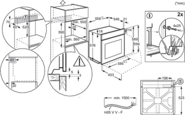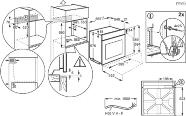 При установке требуется строго соблюдать правила техники безопасности — в частности, выдерживать размеры всех зазоров между стенками духовки и стенками мебели, необходимые для беспрепятственной циркуляции воздуха. Так, расстояние до боковых стенок мебели должно составлять не менее 0,5–1 см, а до задней стенки — не менее 4–5 см.