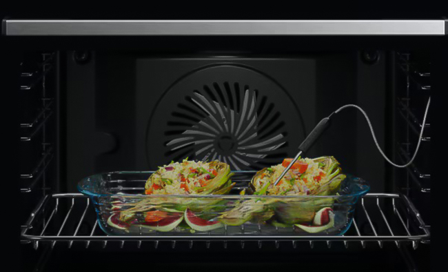 Горячий воздух с температурой от 140 до 250 градусов позволяет создать хрустящую румяную корочку, а пар придает особую сочность внутренней части блюда при сохранении всех полезных веществ. В большинстве духовых шкафов пар, температура которого составляет 100°C, подается в рабочую камеру через определенные интервалы.