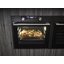 Фасад необычного цвета «антрацит» покрыт специальным составом для защиты от отпечатков пальцев. Модель оснащена вентилятором для равномерного распределения горячего воздуха и грилем. Имеется режим автоматического приготовления «Шеф», ручной режим для профессионального приготовления и шесть режимов приготовления на пару. Сводчатый потолок духовки повторяет форму традиционных печей и придает пище неповторимый вкус. Пиролитическая эмаль на стенках упрощает очистку камеры. На двух уровнях установлены телескопические направляющие для легкого извлечения противней из духовки.
