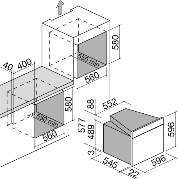 Размеры ниши для встраивания духового шкафа определяются, исходя из габаритов самого устройства. Стандартные модели обычно без труда устанавливаются в нишу шириной около 560 мм, высотой около 595 мм и глубиной примерно 550 мм. Следует помнить, что фасад устройства должен иметь большие размеры, чем величина ниши.
