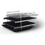 В стандартную комплектацию любого духового шкафа входят один или два противня — эмалированных или с антипригарным покрытием — и решетка. Единственный противень, как правило, имеет низкие бортики и предназначается для приготовления выпечки. Если духовка комплектуется двумя противнями, то второй отличается более высокими бортиками — его можно использовать для запекания мяса, птицы, овощных блюд. На решетке в духовке, не оснащенной грилем, обычно устанавливаются формы для запекания — стальные, керамические или стеклянные. В духовках премиум-класса количество противней может быть увеличено: к стандартному комплекту добавляются противни с перфорацией для мяса, специальные поддоны для сбора выделившегося сока.