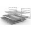 Наиболее удобны телескопические направляющие: они представляют собой металлические опоры, на которых противень не только устанавливается в камере, но и может выдвигаться за ее пределы. Они являются наиболее безопасными, ведь пользователю достаточно потянуть за переднюю часть противня, используя прихватку или полотенце, чтобы полностью извлечь его наружу. Более того, благодаря специальному фиксатору противень можно оставить остывать прямо на направляющих. Единственный недостаток этих направляющих — достаточно сложная конструкция, несколько затрудняющая их очистку.
