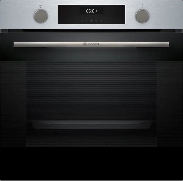 Количество режимов работы в духовом шкафу Бош: 7. В число доступных программ входят: классический нагрев, нижний нагрев, гриль для создания хрустящей корочки, пицца, и другие. Тип гриля в этой модели — электрический.