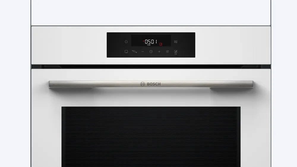 Доводчик дверцы SoftClose с амортизирующими петлями в духовых шкафах Bosch позволяет легко и бесшумно закрывать ее, не прилагая усилий. Дверца не будет хлопать, даже если ее отпустить, доводчик самостоятельно закроет ее и зафиксирует или полностью откроет для удобного размещения противней.