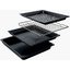 В стандартную комплектацию любого духового шкафа входят один или два противня — эмалированных или с антипригарным покрытием — и решетка. Единственный противень, как правило, имеет низкие бортики и предназначается для приготовления выпечки. Если духовка комплектуется двумя противнями, то второй отличается более высокими бортиками — его можно использовать для запекания мяса, птицы, овощных блюд. На решетке в духовке, не оснащенной грилем, обычно устанавливаются формы для запекания — стальные, керамические или стеклянные. В духовках премиум-класса количество противней может быть увеличено: к стандартному комплекту добавляются противни с перфорацией для мяса, специальные поддоны для сбора выделившегося сока.