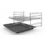 В стандартную комплектацию любого духового шкафа входят один или два противня — эмалированных или с антипригарным покрытием — и решетка. Единственный противень, как правило, имеет низкие бортики и предназначается для приготовления выпечки. Если духовка комплектуется двумя противнями, то второй отличается более высокими бортиками — его можно использовать для запекания мяса, птицы, овощных блюд. На решетке в духовке, не оснащенной грилем, обычно устанавливаются формы для запекания — стальные, керамические или стеклянные. В духовках премиум-класса количество противней может быть увеличено: к стандартному комплекту добавляются противни с перфорацией для мяса, специальные поддоны для сбора выделившегося сока.