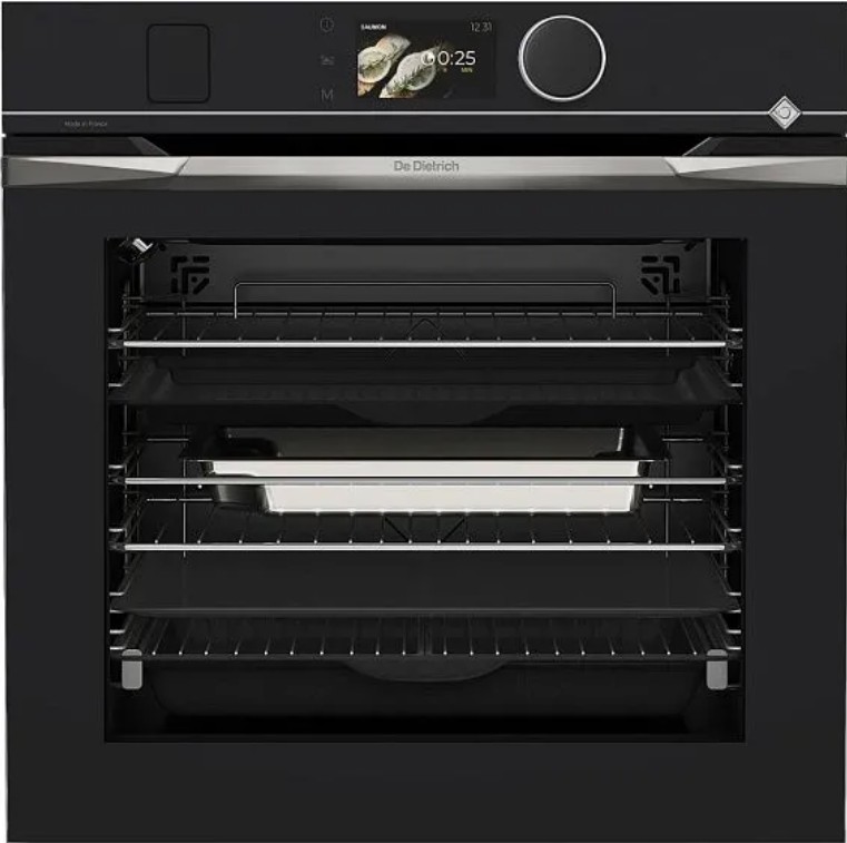 Количество режимов работы в духовом шкафу Де Дитрих: 24. В число доступных программ входят: классический нагрев, конвекция, дополнительное использование пара, гриль для создания хрустящей корочки, сушка для овощей и фруктов, и другие. Помимо основных программ воспользуйтесь специальными возможностями этого прибора: размораживанием продуктов, чтобы сократить время на подготовку; и другими. Тип гриля в этой модели — электрический.