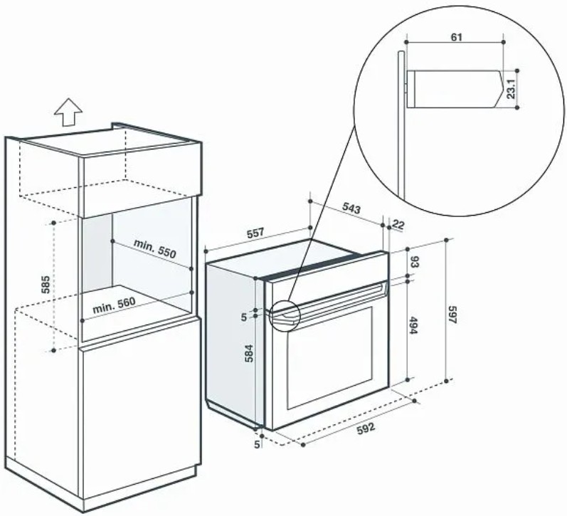При установке требуется строго соблюдать правила техники безопасности — в частности, выдерживать размеры всех зазоров между стенками духовки и стенками мебели, необходимые для беспрепятственной циркуляции воздуха. Так, расстояние до боковых стенок мебели должно составлять не менее 0,5–1 см, а до задней стенки — не менее 4–5 см.