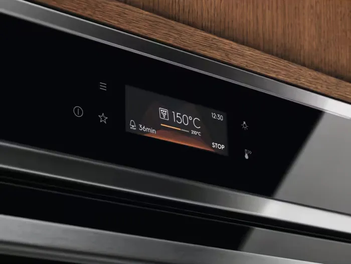 Гораздо нагляднее индикация в духовках с электронным управлением. На панели управления находится дисплей — текстовый или цифровой, на котором высвечиваются сообщения, оповещающие об активации той или иной опции. В более простых случаях духовки оснащаются сегментным ЖК-дисплеем, на который выводятся условные обозначения и числа. На нем может появляться, например, сообщение об уровне мощности гриля или микроволн, о выбранной температуре, о времени, оставшемся до отключения духовки, об запланированной отсрочке старта. TFT-дисплей имеет больший набор возможностей: на нем отображаются не только символы и цифры, но и полноценный текст, а также изображения.