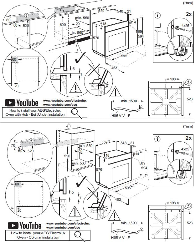 Ко всем моделям прилагаются подробные инструкции по установке, где указаны точные размеры ниши для каждой конкретной духовки.