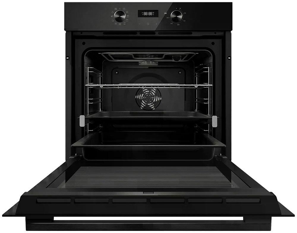 Особенности дизайна и внешней панели управления — также важный пункт при выборе духовки на кухню. В данной модели нужно обратить внимание на цвет — черный,