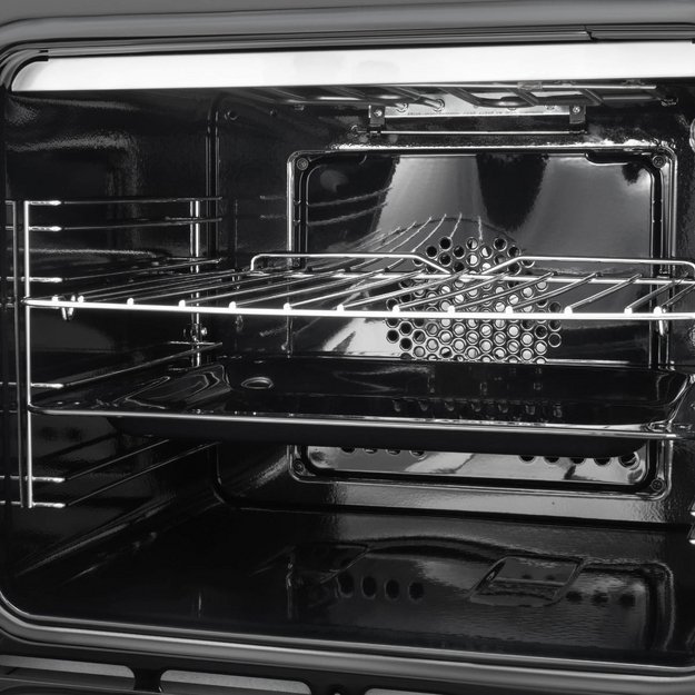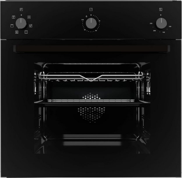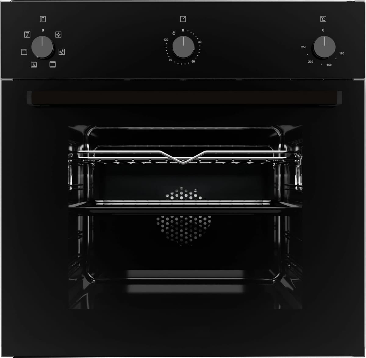 Чёрное исполнение фасада придаёт технике солидный и элегантный вид, гармонично вписываясь в интерьеры разных стилей — от минимализма до классики. Гладкая поверхность легко очищается, сохраняя аккуратный внешний вид на долгие годы. Внутреннее пространство оптимизировано для одновременного размещения нескольких противней или форм, что делает приготовление комплексных блюд быстрым и удобным.