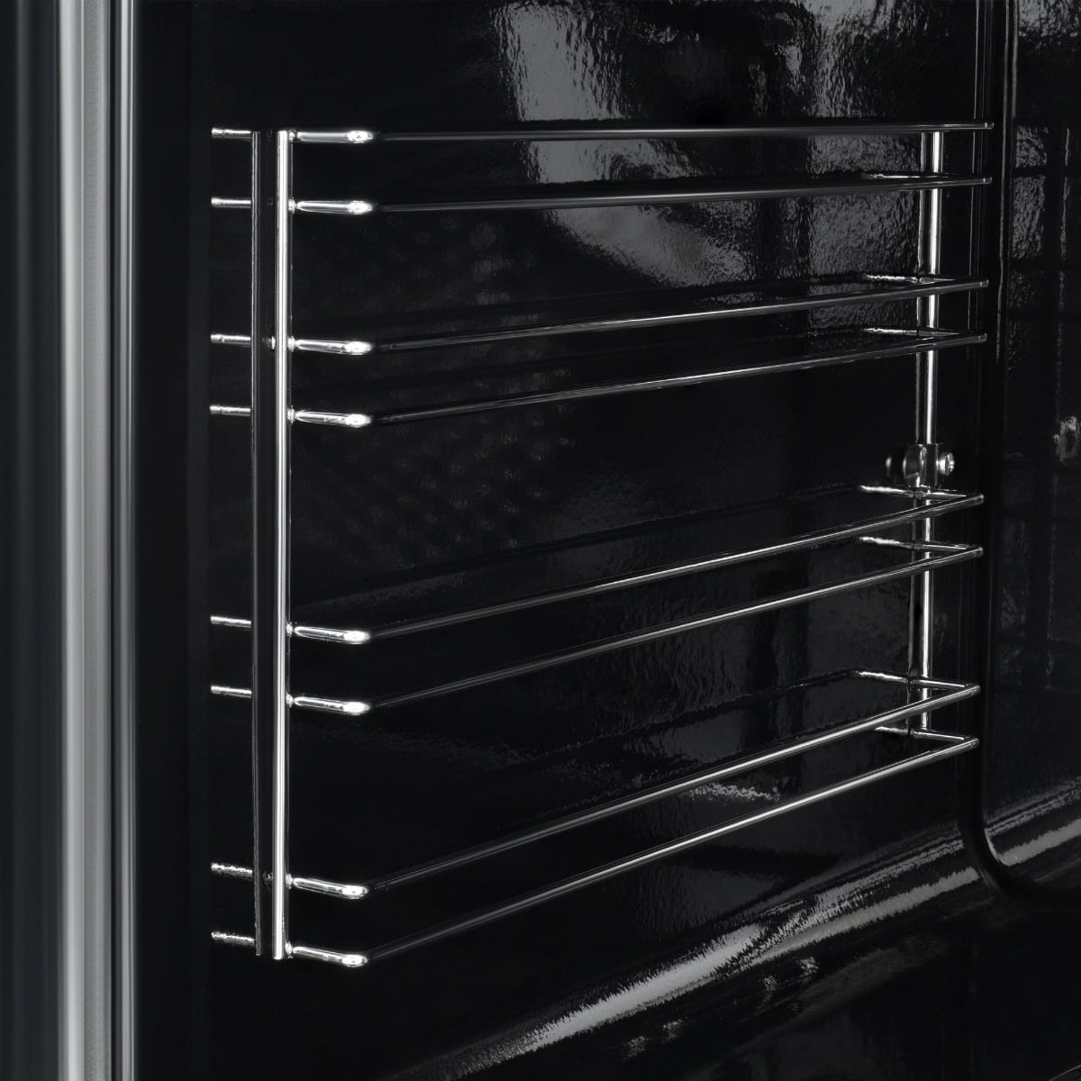 Проволочные направляющие — металлические прутья или решетка, концы которой закрепляются в отверстиях или выемках на боковых стенках рабочей камеры. Они изготавливаются из хромированного металла и выдерживают высокие термические нагрузки. В съемном варианте они легко извлекаются для тщательной очистки под струей воды. Если духовка оснащена такими направляющими, ее покрытие остается неповрежденным, а противни и решетки не застревают при установке или извлечении благодаря гладкому покрытию.
