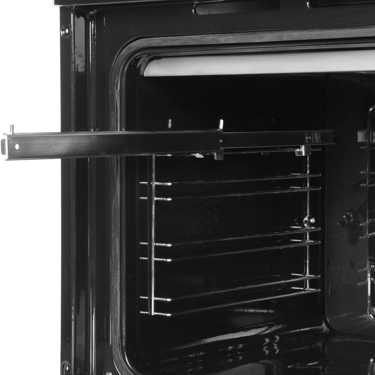 Проволочные направляющие — металлические прутья или решетка, концы которой закрепляются в отверстиях или выемках на боковых стенках рабочей камеры. Они изготавливаются из хромированного металла и выдерживают высокие термические нагрузки. В съемном варианте они легко извлекаются для тщательной очистки под струей воды. Если духовка оснащена такими направляющими, ее покрытие остается неповрежденным, а противни и решетки не застревают при установке или извлечении благодаря гладкому покрытию.