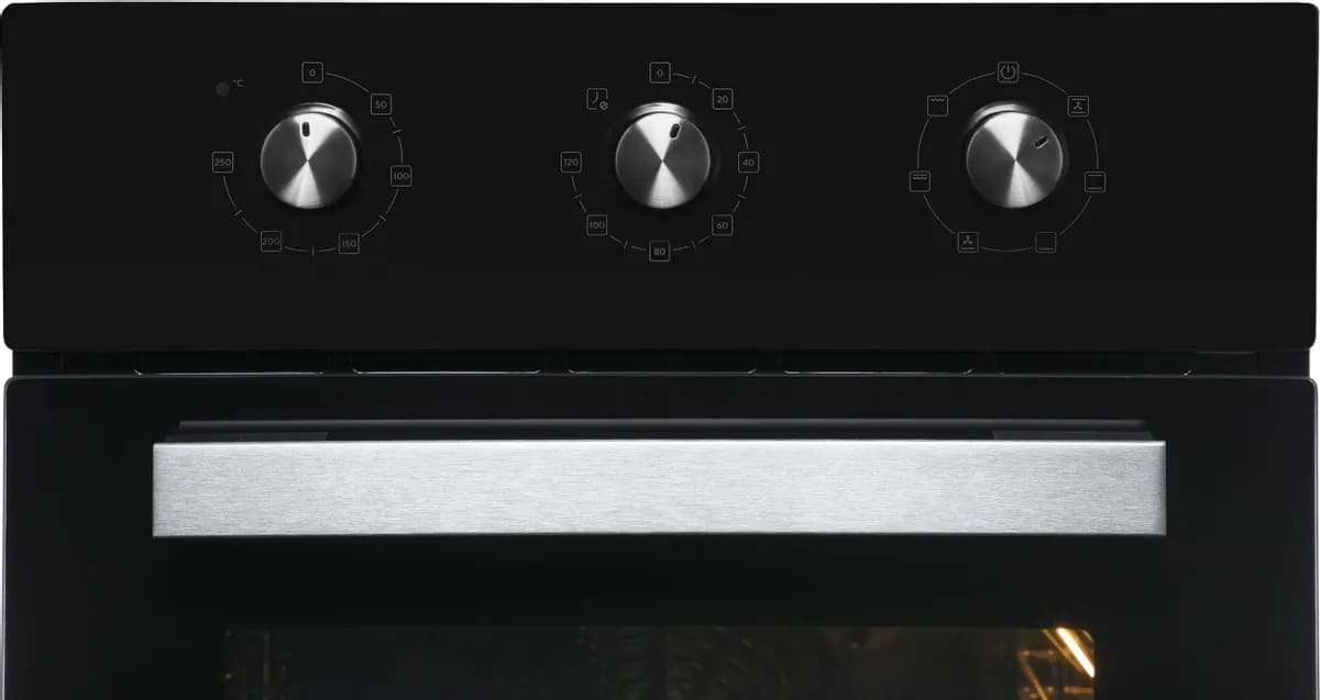 Особенности дизайна и внешней панели управления — также важный пункт при выборе духовки на кухню. В данной модели нужно обратить внимание на цвет — черный, Механическая панель управления позволяет быстро разобраться в настройке программ и не требует чрезмерных усилий.