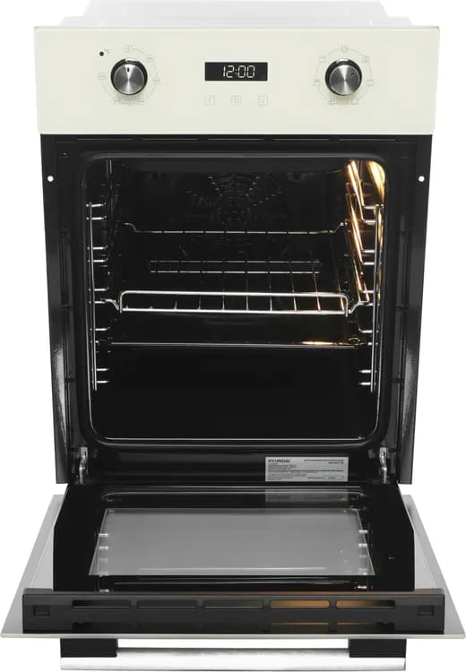Количество режимов работы в духовом шкафу Хендай: 6. В число доступных программ входят: классический нагрев, нижний нагрев, конвекция, гриль для создания хрустящей корочки, и другие. Тип гриля в этой модели — электрический.