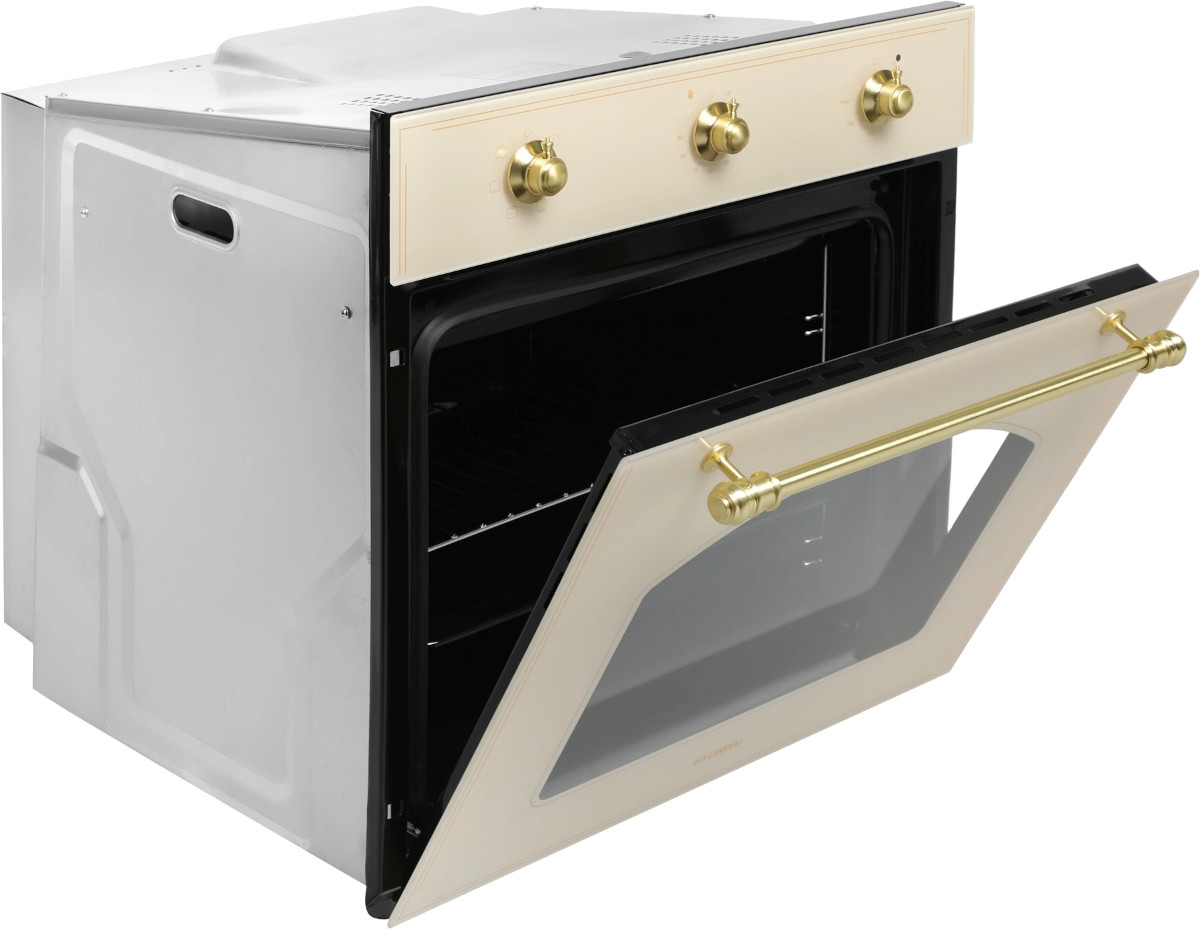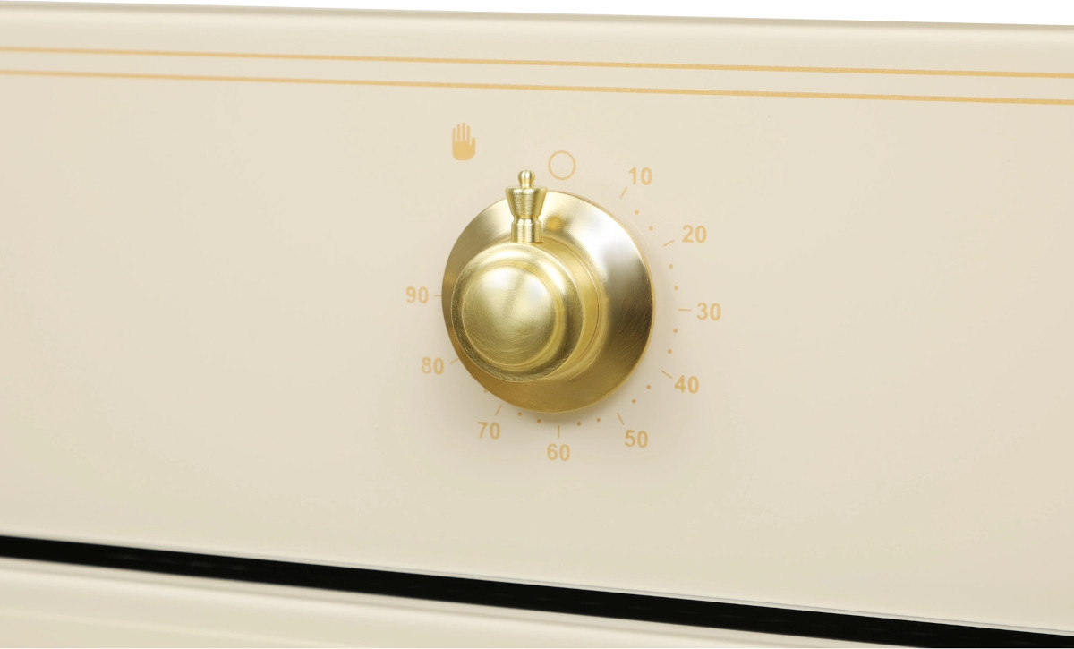 Особенности дизайна и внешней панели управления — также важный пункт при выборе духовки на кухню. В данной модели нужно обратить внимание на цвет — бежевое стекло, Механическая панель управления позволяет быстро разобраться в настройке программ и не требует чрезмерных усилий.