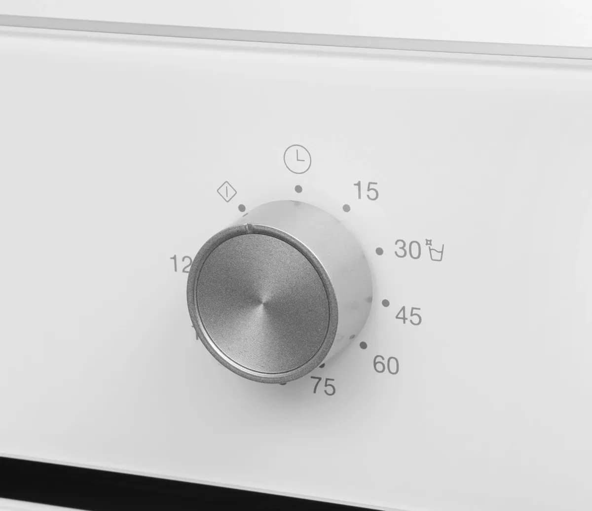 Особенности дизайна и внешней панели управления — также важный пункт при выборе духовки на кухню. В данной модели нужно обратить внимание на цвет — белый, Механическая панель управления позволяет быстро разобраться в настройке программ и не требует чрезмерных усилий.