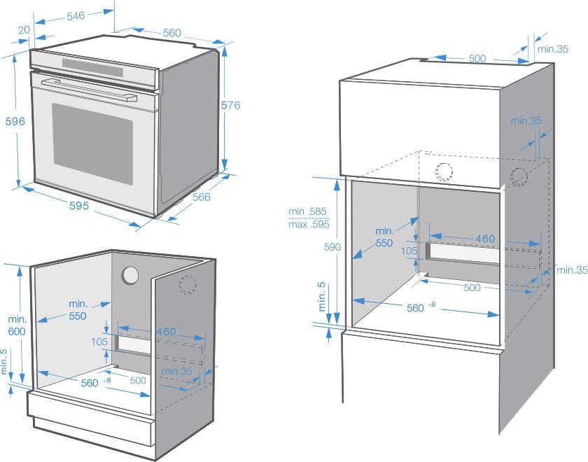 Ко всем моделям прилагаются подробные инструкции по установке, где указаны точные размеры ниши для каждой конкретной духовки.